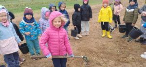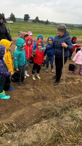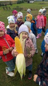 1 października dzieci z grupy III i IV  pojechały na wycieczkę do Bazylowej Polany na  „Święto Pieczonego Ziemniaka”. Przedszkolaki zapoznali się z historią ziemniaka, dowiedziały się skąd pochodzi nazwa. Omówiona została praca rolnika. Przedszkolaki obserwowały wykopywanie maszyną ziemniaków, by po chwili wziąć udział w wykopkach – zbieraniu ziemniaków. Każdy otrzymał wiaderko. Zebrane ziemniaki zsypywaliśmy do przygotowanych worków. Dzieci pracowały pilnie niczym pszczółki. Uwieńczeniem ciężkiej pracy było pieczenie w ognisku ziemniaków i kiełbasek, które z apetytem zjadły na świeżym, wiejskim  powietrzu. Po takiej porcji wrażeń i ruchu dzieci wróciły do przedszkola trochę zmęczone, ale bardzo szczęśliwe.