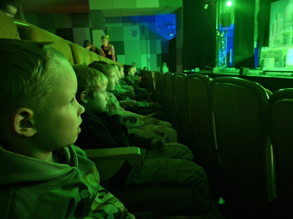 5 listopada dzieci z grup III, IV i V wybrały się do Centrum Impart we Wrocławiu na spektakl teatralny „Karolcia”. Przedstawienie o przygodach dziewczynki, która znajduje zaczarowany koralik spełniający życzenia, bardzo spodobało się naszym przedszkolakom. Mali widzowie z zaciekawieniem śledzili losy bohaterów, reagując żywiołowo na humor i muzykę. Wizyta w teatrze była wspaniałą okazją do rozwijania wrażliwości estetycznej i poznania magii sceny. Dzieci wróciły do przedszkola pełne wrażeń i z uśmiechami na twarzach.