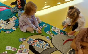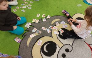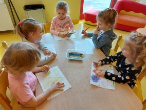 5 listopada przypada Międzynarodowy Dzień Postaci z Bajek. Dzieci z grupy II chętnie opowiadały w tym dniu o swoich ulubionych bohaterach – przeważała Elza z Krainy Lodu i Spider – mann, a także Świnka Pepa i Psi Patrol. A potem przedszkolaki próbowały grać w grę karcianą – „Piotrusia” z postaciami z bajek. Była to nietypowa rozgrywka, bo trudnością dla dzieci okazało się trzymanie kart w rączce. Niemniej świetnie wychodziło dzieciom dobieranie kart w pary. Na zakończenie dnia przedszkolaki świetnie pokolorowały kolorowankę z bajki o Królewnie Śnieżce.
