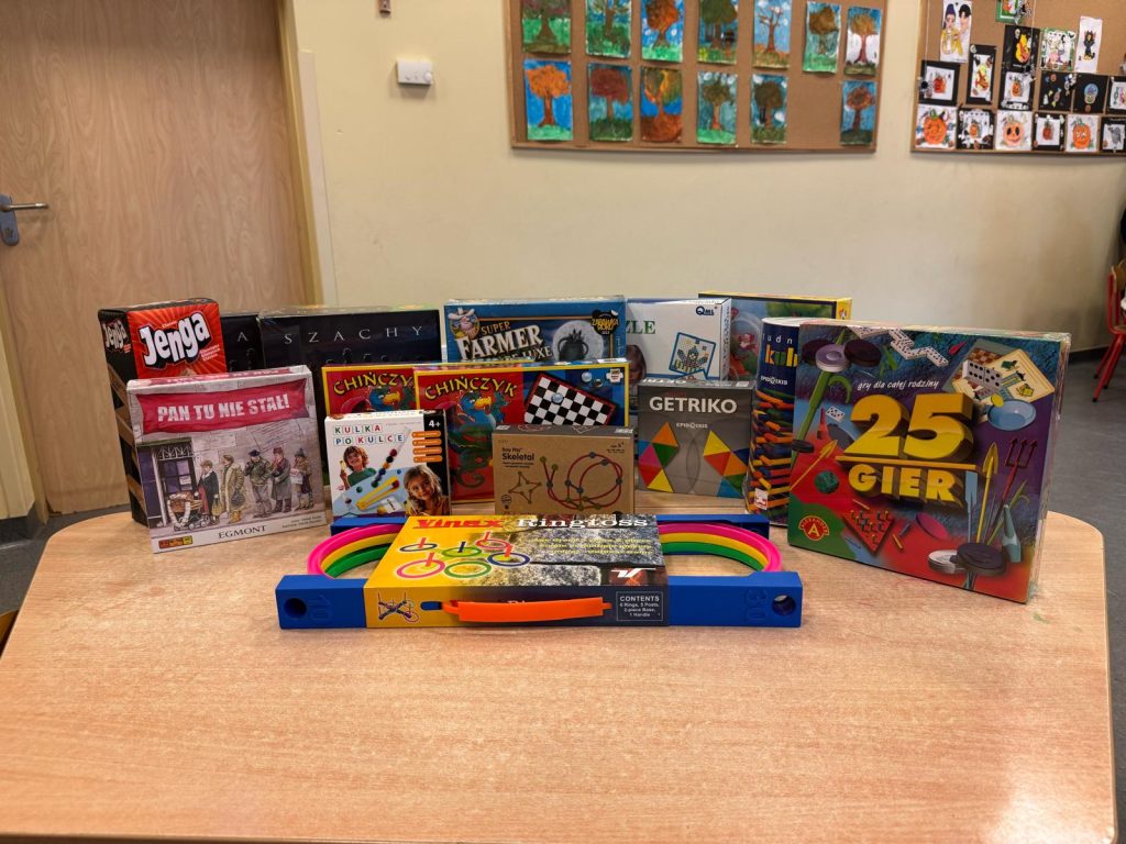 Dzięki przekazanym środkom możliwy był zakup nowych książek do biblioteki szkolnej oraz gier edukacyjnych do świetlicy, które wzbogaciły ofertę edukacyjną i wychowawczą szkoły.