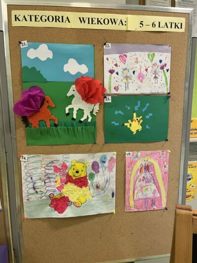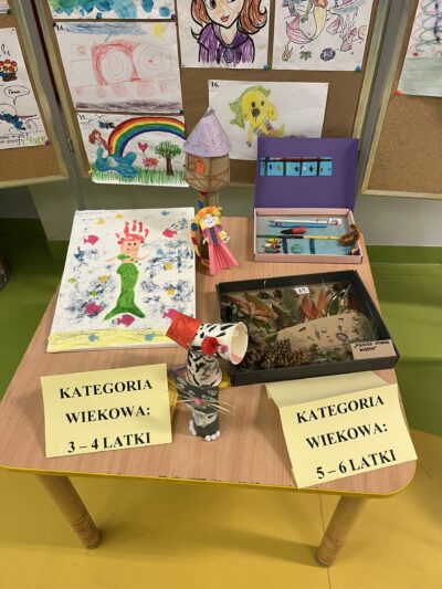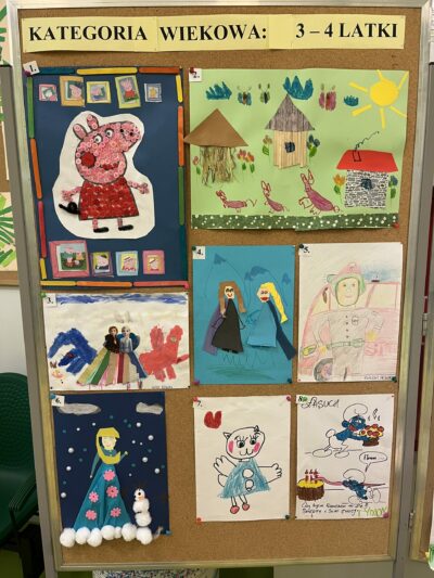 W naszym przedszkolu rozstrzygnięty został przedszkolny konkurs plastyczny pt. ,,Moja ulubiona postać z książkowej bajki” zorganizowany przez nauczycielki naszego przedszkola. Głównymi celami konkursu było: promowanie aktywności czytelniczej, kształtowanie wrażliwości odbioru utworów literackich; rozwijanie kreatywności, uzdolnień plastycznych, wrażliwości artystycznej dzieci; wzbogacanie warsztatu plastycznego w zakresie różnorodnych form i technik plastycznych; wspieranie osiągnięć dzieci uzdolnionych plastycznie. Konkurs cieszył się bardzo dużym zainteresowaniem wśród dzieci, co potwierdza ilość złożonych prac plastycznych spełniających wymagania konkursu. Wszystkie prace wzbudziły zachwyt jurorów, a ich autorzy zasługują na wielkie uznanie i pochwałę. Podczas oceny zwracano uwagę na aktywność twórczą, umiejętność łączenia ze sobą różnych technik, zagospodarowanie przestrzeni i oryginalne ujęcie tematu. Jury postanowiło nagrodzić laureatów w dwóch grupach wiekowych.