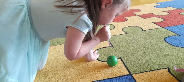 Poranek logopedyczny w grupie piątej: usprawnianie aparatu artykulacyjnego poprzez zabawy wzmacniające mięśnie ust i ćwiczenia z lusterkiem wspierające prawidłową pionizację języka.