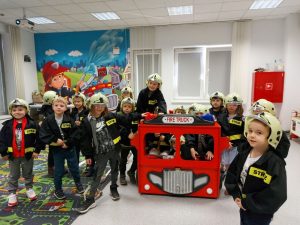 11 marca dzieci z grupy VI wybrały się na wycieczkę do Staży Pożarnej przy ulicy Kosmonautów do sali edukacyjnej Ognik. Na miejscu przywitał sześciolatki pan komendant w randze kapitana, który przeprowadził z dziećmi zajęcia edukacyjne o radzeniu sobie podczas zagrożenia pożarem oraz jak zapobiegać pożarom. Na wstępie przedszkolaki przebrały się w stroje strażaków, poczuły, jak to fajnie być strażakiem. Potem obejrzały film edukacyjny o przepisach przeciwpożarowych i podsumowały zdobytą wiedzę w rozmowie z panem komendantem. Na koniec obejrzały etapy rozkładania ogromnej drabiny w wozie strażacki. Miłym akcentem były także urodziny Juliana, którego tata jest także strażakiem. Wycieczka należała do tych udanych, wzbudziła wiele emocji.