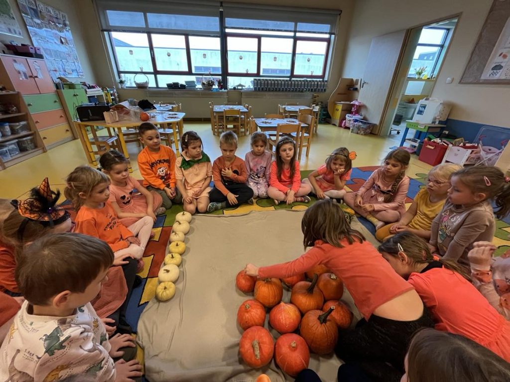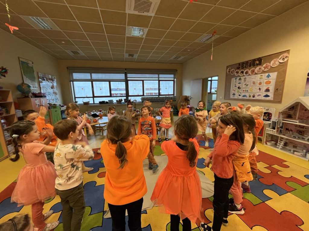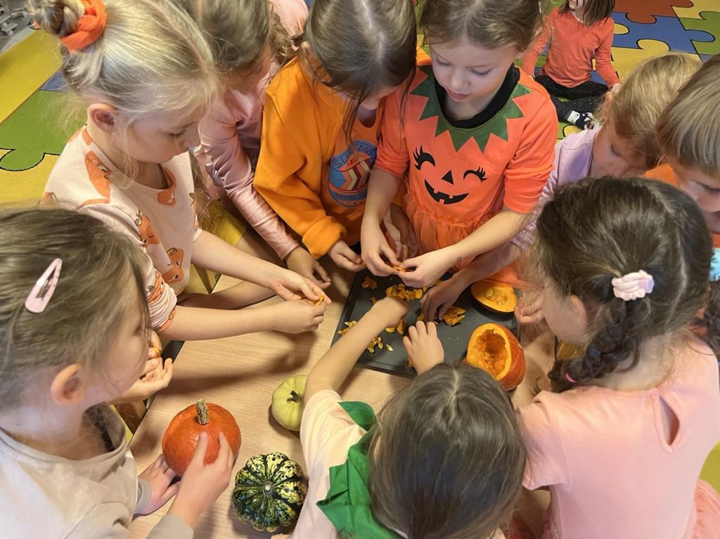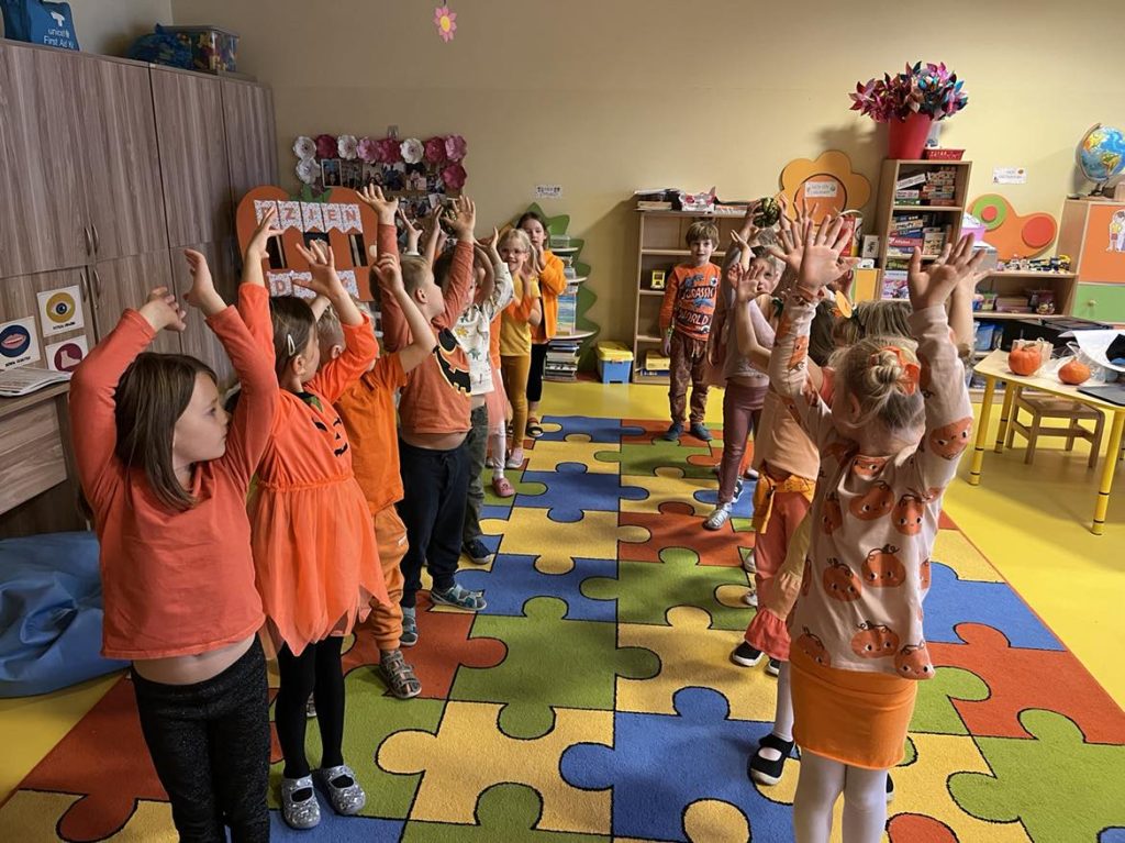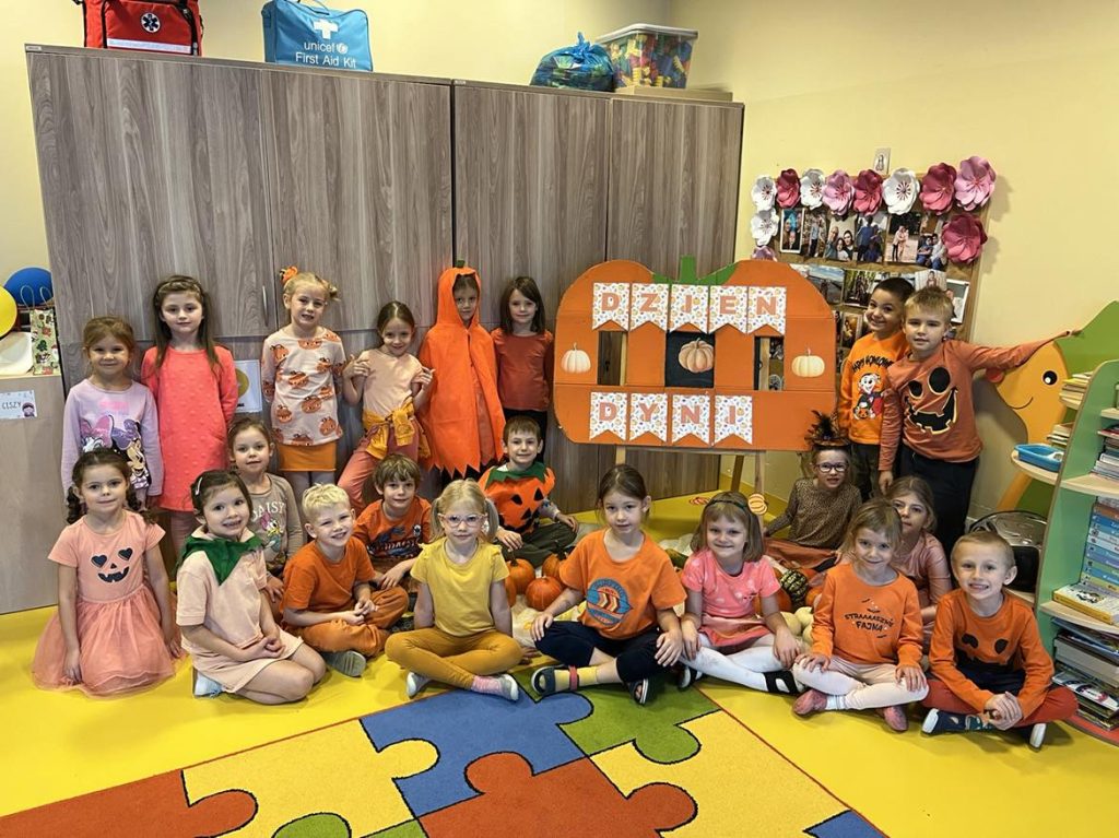 Przedszkolaki z grupy VI świętowały Dzień Dyni, który był fantastyczną okazją do wspólnej zabawy, przepełnioną pięknym jesiennym kolorem pomarańczowym. Tego dnia przyniosły do przedszkola dynie o różnych kształtach, kolorach i gabarytach. Dzieci zobaczyły, co kryje się w środku dyni oraz co można z niej przyrządzić. Dzieci przygotowały również piękne prace plastyczne, które stały się ozdobą naszego przedszkola.  Nie zabrakło zawodów sportowych z wykorzystaniem dyni oraz dyniowych tańców. Ten dzień był pełen wrażeń i radości.