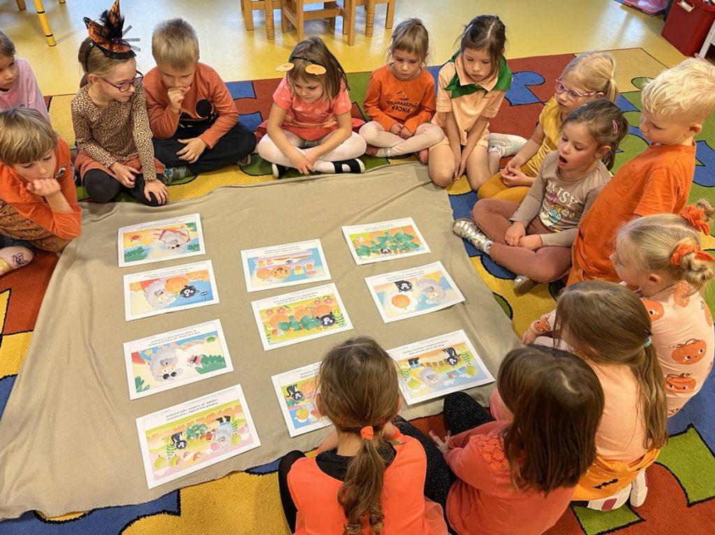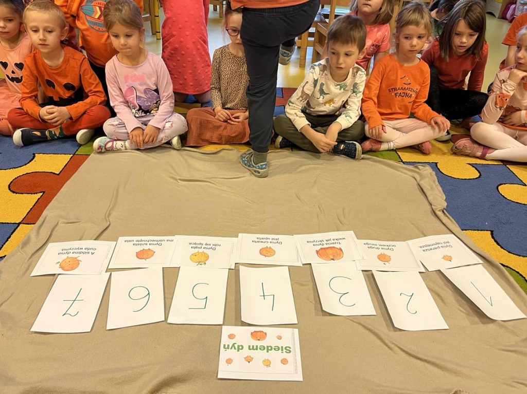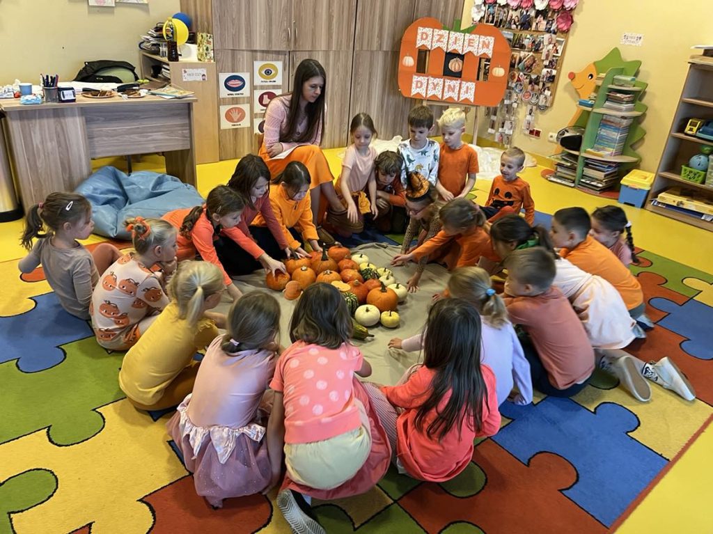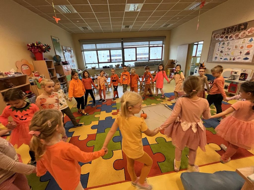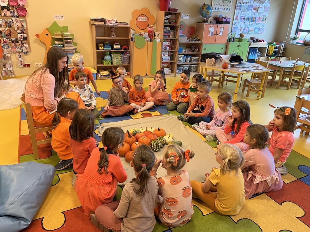 Przedszkolaki z grupy VI świętowały Dzień Dyni, który był fantastyczną okazją do wspólnej zabawy, przepełnioną pięknym jesiennym kolorem pomarańczowym. Tego dnia przyniosły do przedszkola dynie o różnych kształtach, kolorach i gabarytach. Dzieci zobaczyły, co kryje się w środku dyni oraz co można z niej przyrządzić. Dzieci przygotowały również piękne prace plastyczne, które stały się ozdobą naszego przedszkola.  Nie zabrakło zawodów sportowych z wykorzystaniem dyni oraz dyniowych tańców. Ten dzień był pełen wrażeń i radości.