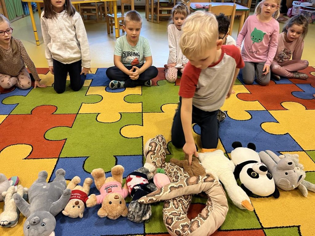 Dzieci z grupy VI uczestniczyły w obchodach Dnia Pluszowego Misia. Z okazji tego święta, przedszkolaki wzięły udział w „grze terenowej” – ich zadaniem było rozwiązywanie wskazówek i zadań, w celu dotarcia do krainy misiów, zgodnie z treścią zawartą w otrzymanych listach. Dodatkowo, w tym dniu, dzieci miały możliwość zabrania ze sobą do przedszkola swoich ulubionych maskotek.