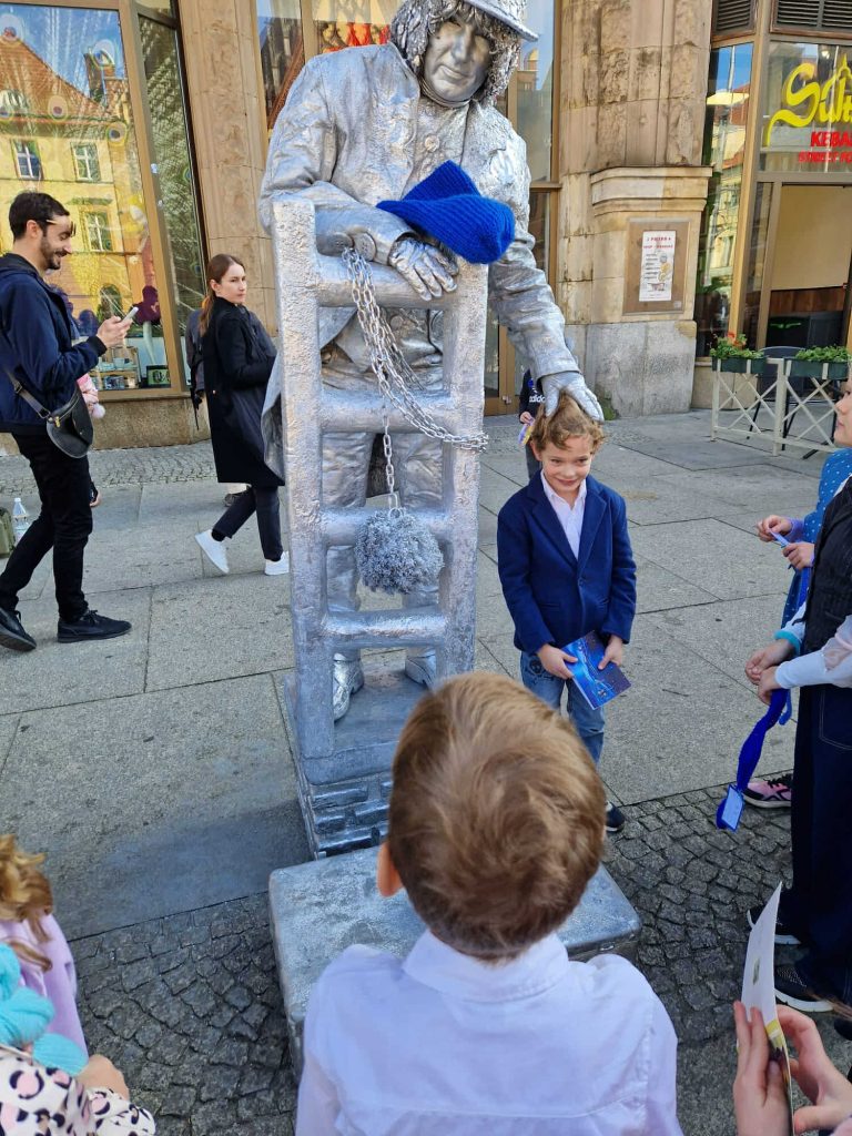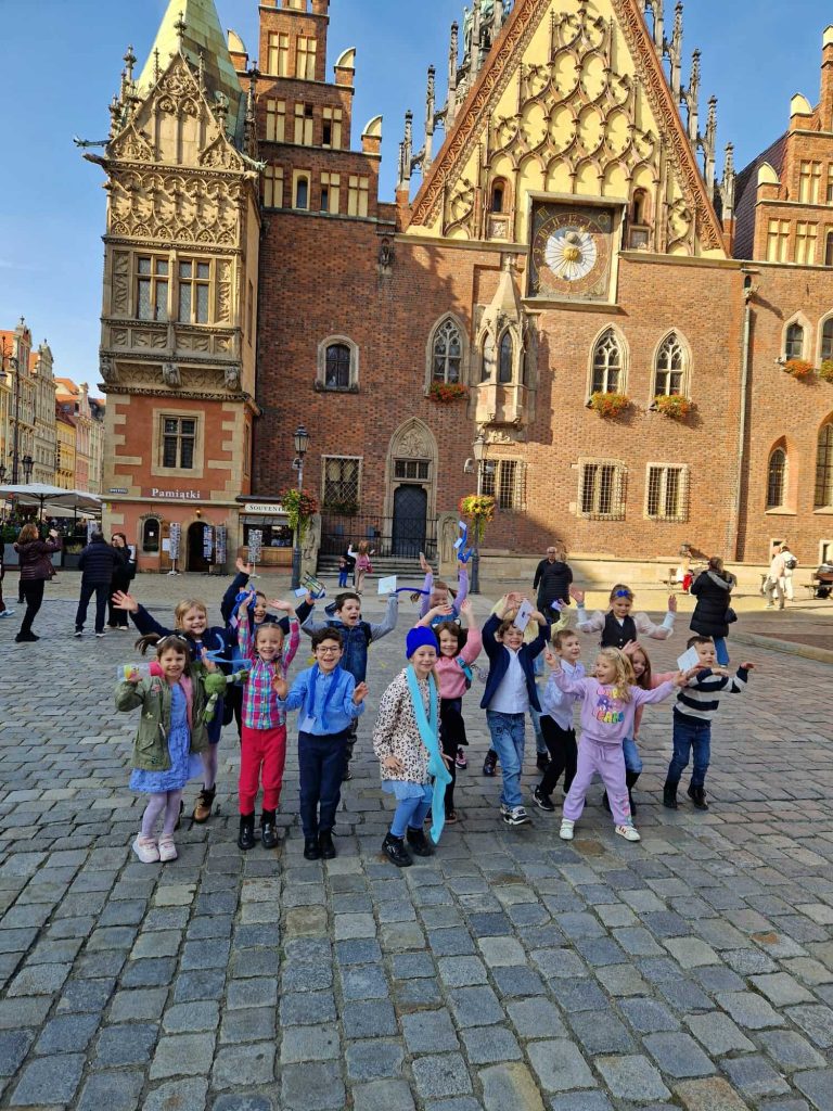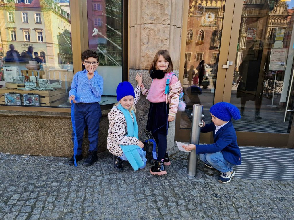 Dzieci z grupy VI wzięły udział w niebieskim koncercie przeciw przemocy. Podczas koncertu zaśpiewały piosenkę M. Grechuty „Dni, których nie znamy”. NIEBIESKI KONCERT w Operze Wrocławskiej, to organizowane pod patronatem merytorycznym Niebieskiej Linii – najstarszego polskiego pogotowania dla osób doświadczających przemocy, widowisko muzyczno-filmowe, którego celem, obok współdzielenia dobrych emocji i świetnej muzyki, jest poszerzanie świadomości na temat zachowań przemocowych, dyskusja na temat przemocy, jako czynnika utrudniającego profilaktykę depresji u dzieci, a także integracja wrażliwych odbiorców sztuki, którzy rozumieją wpływ muzyki na budowanie jakościowych przekazów społecznych. Wrocławski koncert poprzedzony był spacerem dzieci, w ramach którego ubierały krasnale w niebieskie szaliki opatrzone etykietami z numerem zaufania dla dzieci i młodzieży, które mali manifestanci zaopatrzyli w listy wsparcia dla osób w kryzysie.