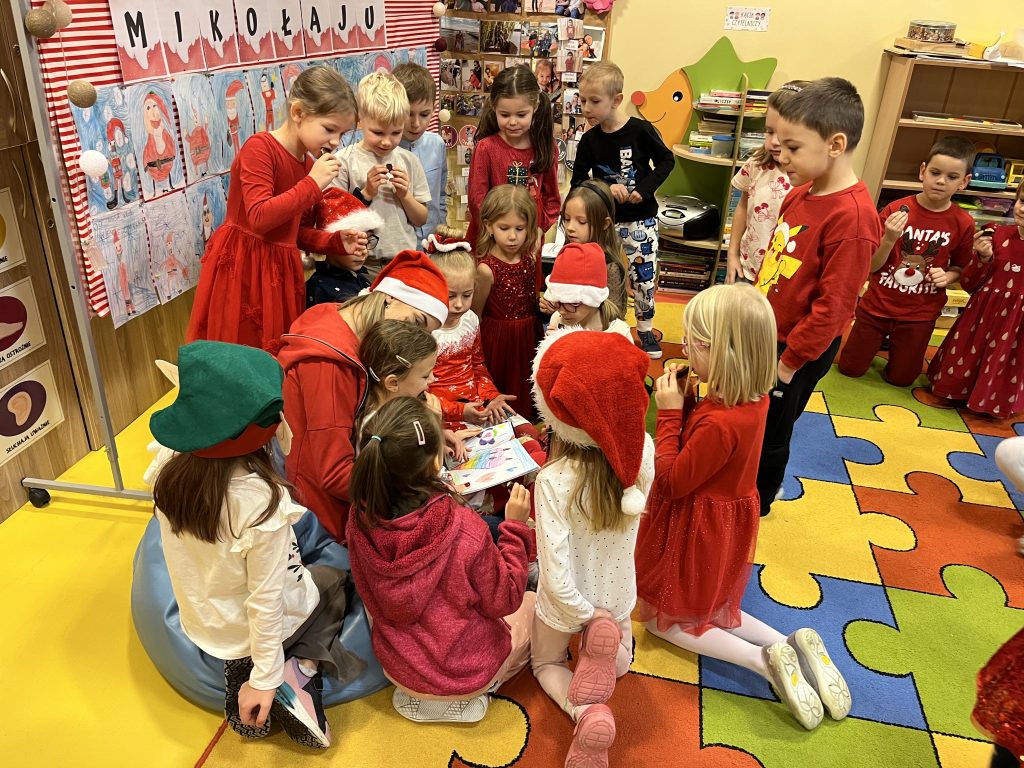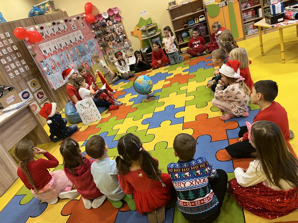 Przedszkolaki z grupy VI miały przyjemność gościć w swojej sali Panią Kasię – mamę Oliwci. Pani Kasia przygotowała dla dzieci serię bajek o Świętach Bożego Narodzenia. W szczególności poruszyła z dziećmi tematykę tradycji bożonarodzeniowych w Polsce i innych krajach, wskazując na podobieństwa i różnice. Serdecznie dziękujemy za przemiłą wizytę!