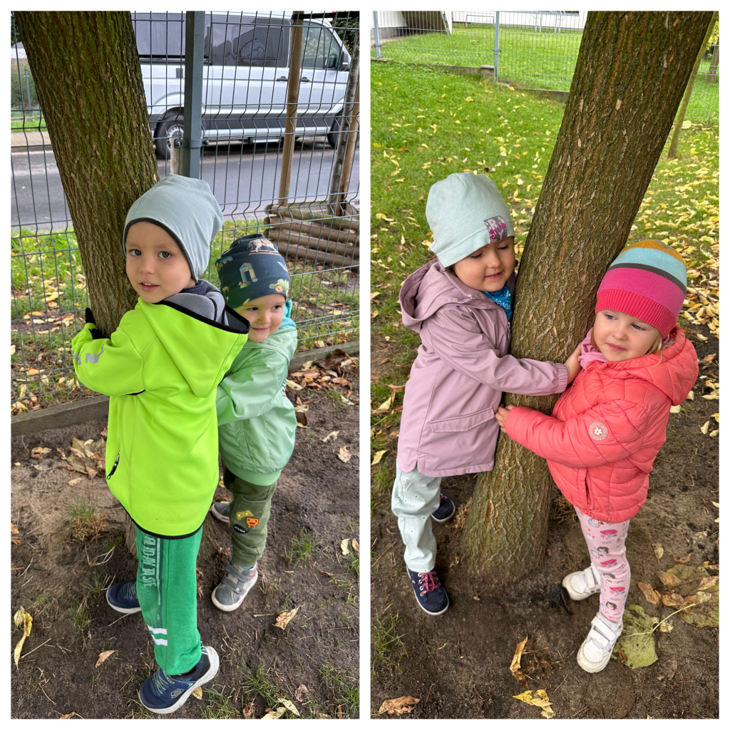 Dzieci uczestniczyły w zabawach tematycznych, oglądały ilustracje i książeczki przyrodnicze, a także uczyły się rozpoznawać różne gatunki drzew po liściach i owocach. Nie zabrakło również działań plastycznych – przedszkolaki wykonały piękną pracę inspirowaną jesiennymi drzewami. Podczas spaceru po przedszkolnym ogrodzie dzieci mogły przytulić się do drzew, posłuchać „jak szumią” i podziękować im za cień, tlen oraz owoce.