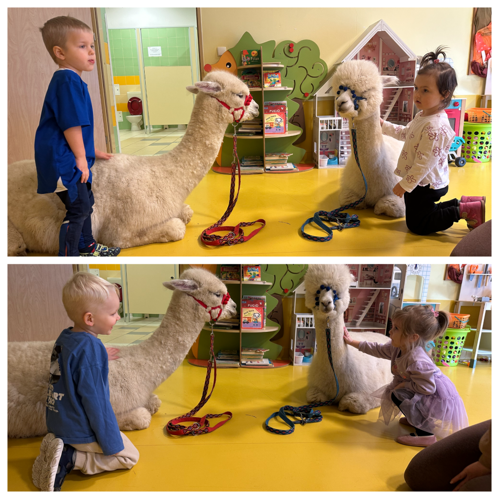 Dzieci mogły głaskać i karmić alpaki, obserwować ich zachowanie oraz uczestniczyć w zabawach edukacyjnych prowadzonych przez opiekunów zwierząt. Spotkanie sprzyjało rozwijaniu empatii, odpowiedzialności oraz szacunku do świata zwierząt.