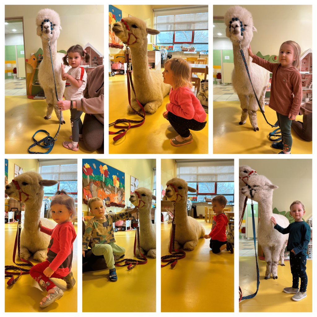 W naszym przedszkolu odbyły się wyjątkowe warsztaty z alpakami, które przyniosły dzieciom wiele radości i niezapomnianych wrażeń. Przedszkolaki miały okazję poznać te sympatyczne zwierzęta z bliska, dowiedzieć się ciekawostek o ich zwyczajach i potrzebach, a także zobaczyć, jak należy o nie dbać.