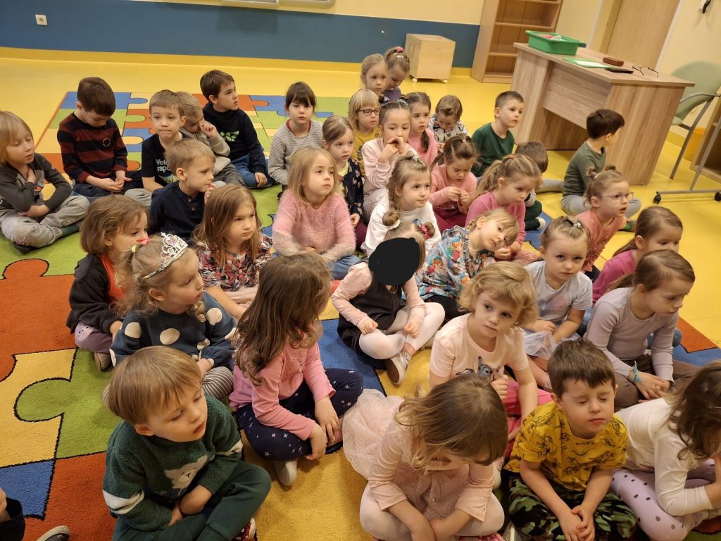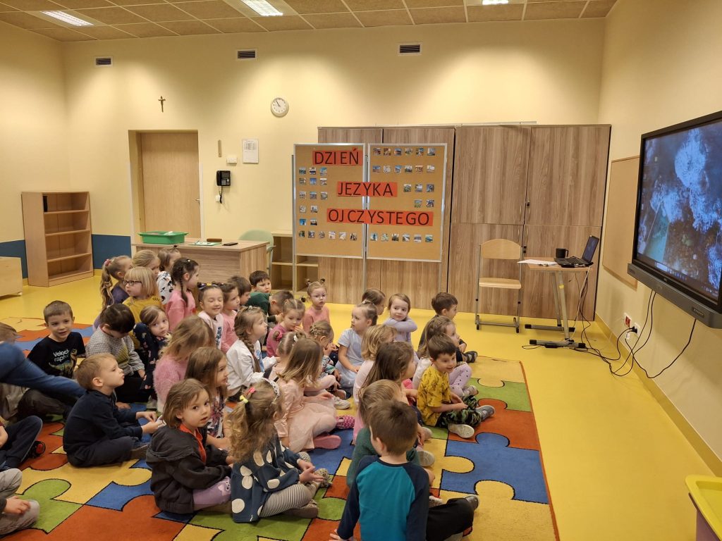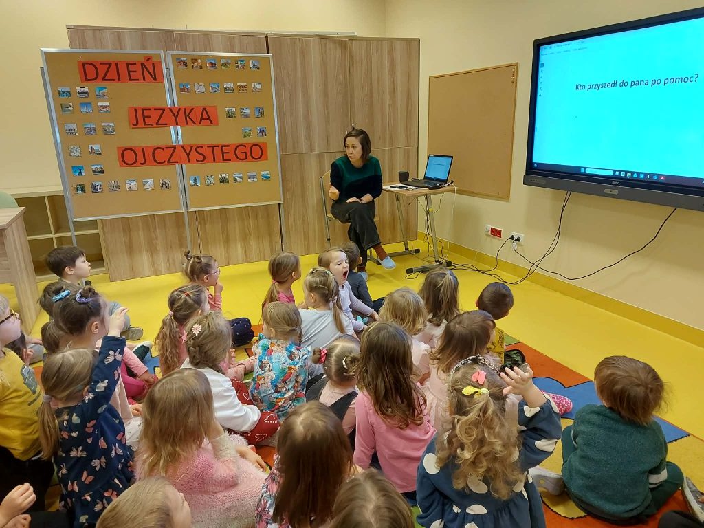 Grupa przedszkolaków podczas zajęć w ramach Dnia Języka Ojczystego.