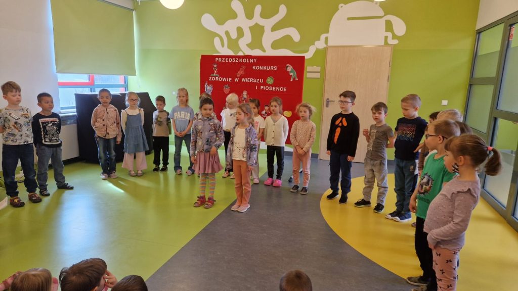 Podczas Przedszkolnego Konkursu Zdrowie w wierszu i piosence wszystkie dzieci z Przedszkola nr 16 miały okazję zaprezentować swoje talenty artystyczne oraz wiedzę na temat zdrowego stylu życia. Każda grupa przygotowała wiersze i piosenki o tematyce prozdrowotnej, które przedszkolaki z ogromnym zaangażowaniem i radością zaprezentowały przed publicznością.