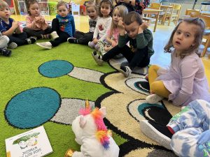 W ramach realizacji projektu edukacyjnego „Kolorowe Uczucia Gucia” przedszkolaki z grupy I uczestniczyły w zajęciach poświęconych ważnej umiejętności, jaką jest wybaczanie. Bohaterem spotkania był Gucio, który pomógł dzieciom lepiej zrozumieć świat emocji.