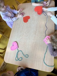 Nie zabrakło również aktywności praktycznych – dzieci brały udział w zabawach i scenkach sytuacyjnych, które pomagały utrwalać zdobytą wiedzę. Dodatkowo wykonały pracę plastyczną „przeplatane serce”, symbolizującą życzliwość, przyjaźń i umiejętność wybaczania.