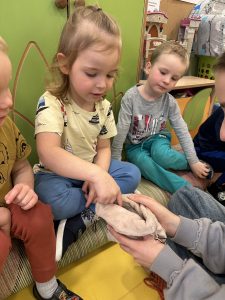 Przedszkolaki z grupy I miały okazję poznać trzy lotopałanki oraz dowiedzieć się wielu ciekawostek na temat ich życia, zwyczajów i naturalnego środowiska. Dzieci z dużą uwagą słuchały opowieści o ich nocnym trybie życia, sposobie odżywiania oraz niezwykłej umiejętności szybowania.