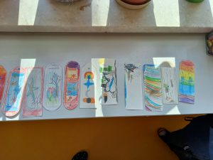 W  kwietniu w grupie III obchodziliśmy Dzień Książki. Była to okazja do kształtowania nawyków czytelniczych poprzez zabawę. Dzieci stworzyły karty do swojej autorskiej książki pt. „Bajki”, powstały również fantastyczne,kolorowe zakładki do książki. Dzieci dowiedziały się jak powstaje książka-jak wygląda praca pisarza a jak ilustratora i po co chodzimy do księgarni i do biblioteki. Wspólnie oglądały różne książki: albumy, atlasy, przewodniki, książki kucharskie, słowniki, książki przestrzenne, sensoryczne i dźwiękowe. Następnie rozmawialiśmy na ich temat. Poznawały zmysłami różne rodzaje papieru. Dowiedziały się także jak powstaje papier czerpany.