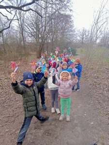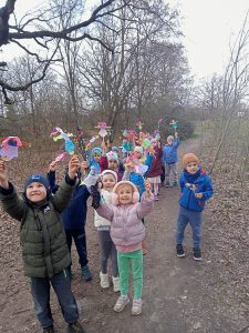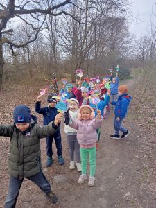 23 marca dzieci z grupy III uroczyście powitały pierwszy dzień wiosny. Tego dnia przedszkolaki wybrały się na spacer do Parku Krzyckiego, aby wspólnie przywitać nową porę roku. Dzieci w rękach trzymały kolorowe,małe marzanny,które wcześniej wykonały podczas zajęć oraz gałązki udekorowane kolorowymi pomponikami. Wspólnie wypatrywaliśmy pierwszych oznak wiosny. Podczas naszej wędrówki śpiewaliśmy piosenkę pt. „Przyszła wiosna”. Był to dzień przepełniony radością, pozytywną energią. Spacer „w poszukiwaniu wiosny” stanowił zwieńczenie całego tygodnia, kiedy to rozmawialiśmy o wiośnie, o zmianach w pogodzie wczesną wiosną i jej zwiastunach.