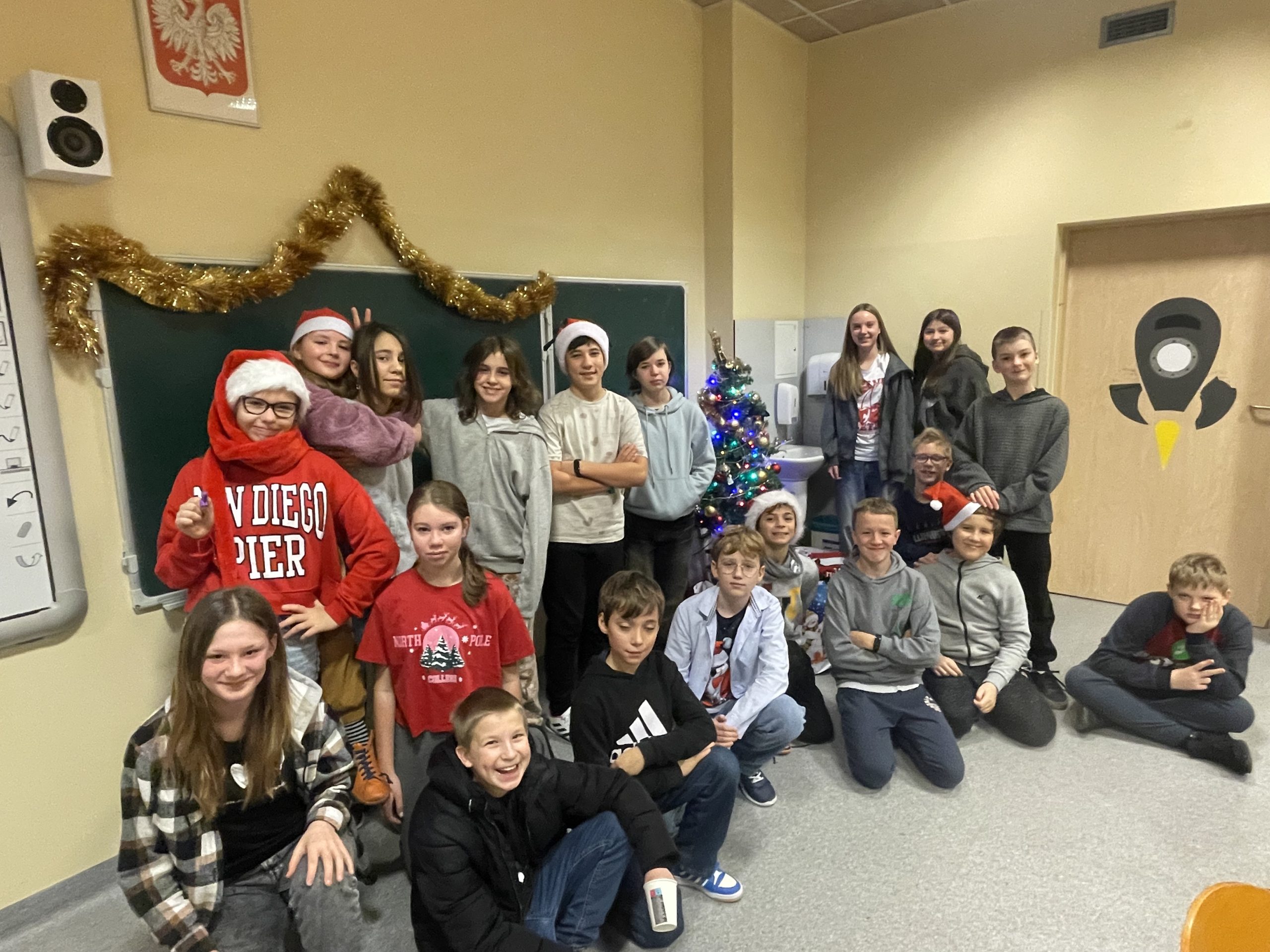 W radosnej i życzliwej atmosferze odbyła się wigilia klasowa i mikołajki w klasie 6b. Były to wyjątkowe chwile, wypełnione kolędami, rozmowami oraz wręczaniem sobie prezentów. Uczniowie zadbali o piękny wystrój sali, dekorowali choinkę oraz przygotowali drobny poczęstunek, który wprowadził wszystkich w magiczny nastrój świąt Bożego Narodzenia.