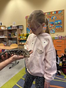 Podczas warsztatów z ZOOMania dzieci miały wyjątkową okazję poznać jaszczurkę teju argentyński. Mogły ją pogłaskać, obserwować jej zachowania i dowiedzieć się wielu ciekawostek o tym niezwykłym zwierzęciu – jak żyje, czym się żywi oraz co najbardziej lubi. Zajęcia pozwoliły dzieciom zbliżyć się do świata gadów, rozwijały ciekawość przyrodniczą oraz uczyły szacunku i troski o zwierzęta. Spotkanie z teju było pełne radości, wrażeń i praktycznej nauki poprzez bezpośredni kontakt z naturą.